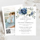 Foto de casamento com código QR floral azul empoeirado Convite com buquê elegante de azul marinho, azul real, branco, marfim de champanhe, rosa de cor esbranquiçada, botões de flores ranúculus e folhas de eucalipto verde-sábio e buquê de cor d'água elegante. Entre em contato comigo para obter ajuda sobre a personalização ou se você precisar de outro produto com este design.