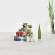 Feliz sapo Verde Feliz de Aniversário sentado sobre a pilha com presentes embrulhados. Chapéu listrado vermelho e branco.