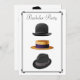Este convite fashion definirá o clima e indicará que é uma noite estilosa na cidade, em vez de uma festa qualquer. Muito masculino, muito elegante. Apresenta um chapéu-coco preto elegante, um fedora trilby preto com faixa cinza e um chapéu de palha com faixa preta com uma borda preta simples em art déco. No verso do convite há outro chapéu fedora com uma faixa branca. Basta preencher as áreas com as informações da sua festa e fazer as alterações necessárias. -- Veja descontos para compras em quantidade. Envelopes incluídos.