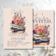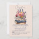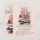 Convite Chapter 50 Birthday Stacked Books with Flowers