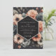 Embrace a moody and romantic aesthetic with this dramatic floral design. Against a dark charcoal backdrop, painterly blooms in dusty slate blue and soft coral create a stunning, elegant contrast. Lush, shadowy botanicals add depth and texture, perfect for a sophisticated and artful union.