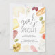 Convide amigos para uma noite de saída (ou entrada!) de garotas de vinho e queijo com estes convites casuais de chic. A design apresenta detalhes de celebração em caracteres modernos, rodeados de ilustrações de queijos, carnes, pão e fruta.
