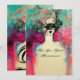Dama elegante e caprichosa com uma sofisticada máscara de penas veneziana em cores vibrantes rosa, verde, fúcsia, preto e branco, inspirada na Comédia da Arte (Commedia dell'Arte) e no Carnaval de Veneza, pintura em aquarela com folha de ouro e prata. Fácil de personalizar com seu próprio texto como um casamento, anúncio, RSVP, agradecimento, chá de noiva, festas de aniversário, chá de engajamento romântico, festa de máscaras de Ano Novo, graduações, aniversários, reuniões ou qualquer outro evento que você deseje!