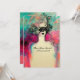 Dama elegante e caprichosa com uma sofisticada máscara de penas veneziana em cores vibrantes rosa, verde, fúcsia, preto e branco, inspirada na Comédia da Arte (Commedia dell'Arte) e no Carnaval de Veneza, pintura em aquarela com folha de ouro e prata. Fácil de personalizar com seu próprio texto para casamento, anúncio, confirmação de presença, agradecimento, chá de noiva, festas de aniversário, chá de revelação de noivado romântico, festa de máscaras de Ano Novo, formaturas, aniversários, reuniões ou praticamente qualquer evento que você desejar!