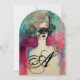 Elegante senhora caprichosa com uma sofisticada máscara de penas veneziana em cores vibrantes rosa, verde, fúcsia, preto e branco, inspirada na Comédia da Arte (Commedia dell'Arte) e no Carnaval de Veneza, pintura em aquarela com folha de ouro e prata. Fácil de personalizar com seu próprio texto como um casamento, anúncio, confirmação de presença, agradecimento, chá de noiva, festas de aniversário, chá de engajamento romântico, festa de máscaras de Ano Novo, formaturas, aniversários, reuniões ou qualquer outro evento que você deseje!