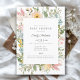 Celebre a chegada do seu pequeno com este elegante convite de chá de bebê de flores silvestres. Com um design de prado em aquarela suave com flores delicadas em tons pastéis, este modelo traz uma sensação leve e fresca para a sua celebração. Está disponível para impressão ou download.