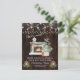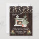 Design de cartão único com árvore de Natal, lareira, velas antigas com vela, folhagens de inverno, luzes de corda em um fundo de madeira de celeiro antigo. Use a ferramenta Personalizar para adicionar suas informações. Veja também, minha Coleção Temos Mudado.