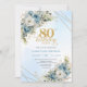 Convite Charming 80th Birthday Invite Dusty Blue Flowers