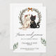 Celebrate your special day with our enchanting cat couple wedding invitation, featuring adorable white and black feline illustrations nestled in a delicate floral wreath. This whimsical yet elegant design captures the essence of true love with a touch of playful charm, perfect for cat enthusiasts and couples seeking a unique, pet-inspired wedding theme. Customizable with your own details, this invitation sets the tone for a memorable and heartwarming celebration of your union.