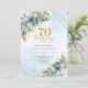 Celebrate a milestone in style with this elegant 70th birthday invitation featuring watercolor dusty blue and white flowers, soft eucalyptus greenery, and a shimmering gold frame. Designed in chic boho style with refined script lettering, this floral invitation is perfect for a classy 70th birthday party. Ideal for formal, garden, or luxury celebrations with a timeless, sophisticated touch.