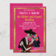 Celebre seu casamento temático Día de los Muertos com uma festejante maravilhosa cheia de comidas, bebidas e música com casais divertidas, bonitinhas e adoráveis de crânios de açúcar Charro e Catrina dançando na melodia dessa vida e além. Fundo cor-de-rosa texturizado, decorado com uma estrutura dourada rico.