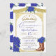 Convite Charro Quinceanera Floral Dourado Rosa Real Azul