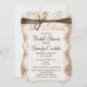 Está aqui um chá de panela rústico original com uma serapilheira e um design impresso laço com um arco impresso da guita na parte superior. A serapilheira, o laço, e a guita são todo o design impresso justo. Este é um convite liso. O design rústico do impressão de serapilheira do país está igualmente na parte traseira. Estes são perfeitos para as noivas que estarão tendo um casamento rústico do país ou o casamento do celeiro. Estes são projetados combinar estes convites rústicos do casamento do país: