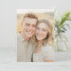 This wedding invitation features a warm, inviting design with two individuals smiling closely together, capturing a moment of genuine happiness and connection. The layout is centered and symmetrical, emphasizing the subjects against a soft, golden-hued background that enhances the cheerful mood. The color palette includes natural tones like beige and light gold, creating a harmonious and elegant atmosphere. The photographic art technique highlights realistic details and textures, ensuring an authentic representation of the joyful occasion. Perfect for celebrating love and unity, this design conveys warmth and positivity through its simple yet effective visual elements.