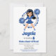 Um cheerleader de cabelo preto bonito em azul para este belo convite de aniversário.