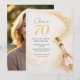 Convite Cheers 70th Birthday Photo Pink Gold Champagne