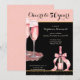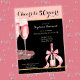 Make your 50th milestone birthday party unforgettable with this stylish and festive invitation design! With a sophisticated two-tone pink black layout, the upper side features a rich pink shade adorned with golden glitters, watercolor champagne glasses, and a bottle that sets the scene for a bubbly celebration. The scripted “Cheers to 50 years” adds a touch of glamour and excitement across the card. On the middle part, black color, room for all your personalized party details in a classy script and serif font pairing. The back design continues the elegant theme with a pink base and shimmering glitter details.