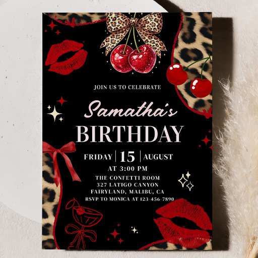Cheetah Coquette Cherry On Top Birthday Invitation