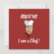 Cabeça de chef com chapéu, corcunda vermelha e texto personalizado.