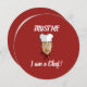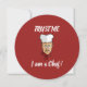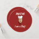 Cabeça de chef com chapéu, corcunda vermelha e texto personalizado.