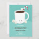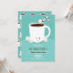 Um convite de Férias para uma festa de Chocolate Quente de Natal. Este convite apresenta uma caneca sorridente de cacau quente com uma cana doce e vários marshmallows alegres sobre fundo leve. Todas as palavras podem ser personalizadas.