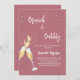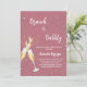 Um convite moderno, na moda e glamouroso para um Chá de panela de bolinho. Um fundo rosa de ouro escuro feminino com bolhas, um par de flautas, óculos. O nome é escrito com um moderno estilo escrito à mão. Personalize e adicione os detalhes da sua festa.