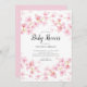 Linda coloração d'água, cereja rosa, flor, quadro floral, convite para chá de fraldas com uma coordenada cor-de-rosa.