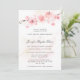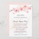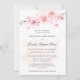 As flores de cereja rosa mais suaves descem em um galho no topo deste convite moderno e minimalista de 1º aniversário da morte. Uma lavagem cor-de-água rosa mal existe adiciona dimensão. O texto da cinza pálida é leve e arejado. O convite de volta também é cor-de-rosa-claro. O resultado é uma design de aquarela botânica moderna.