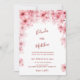 Beautiful pink watercolor cherry blossoms on a white background with bride and groom fist names only.