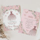 Convite Cherry Blossomo Rosa Floral Vestido Dourado Quince