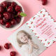 Cherry sweet! Birthday collection featuring summer cherries and pink and white stripes. Photo template via Pixabay licensed under CC0 and must be replaced with your own photo