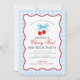 Convite Cherry Sweet Blue Coquette Gingham Primeiro aniver