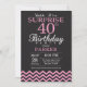 Convite Chevron aniversário de 40 anos preto-e-rosa surpre