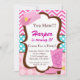Convite Chevron cor-de-rosa, pontos azuis, aniversário da