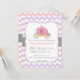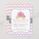 Um encaixe do convite de uma festa de aniversário da princesa com uma imagem de uma carruagem cor-de-rosa da princesa com aparamentos do ouro e as cortinas roxas. Um teste padrão roxo e branco pastel elegante e elegante da viga para o fundo. Este convite do tema da princesa com sua paleta feminino e dos direitos de cor da paleta cor-de-rosa, roxa, branca e cinzenta é ideal para qualquer um que está planeando uma festa de aniversário para suas meninas doces.