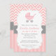 Convite Chevron, Stroller, Chá de Garota Rosa e Branca