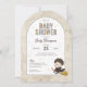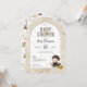 Celebre seu pequeno mago a caminho com este encantador convite de chá de bebê do Harry Potter, apresentando o próprio Harry. Este charmoso design inclui uma ilustração adorável de Harry Potter com suas vestes de Hogwarts, montado em sua vassoura e pronto para aventuras mágicas. O fundo é salpicado de estrelas coloridas para um toque de capricho. Fontes elegantes e divertidas exibem lindamente seus detalhes personalizados, incluindo o nome da homenageada, data, hora, local, informações de RSVP e registro de presentes. A forma arqueada única do convite cria uma sensação de livro de histórias, enquanto o verso apresenta um padrão divertido de ícones do mundo mágico, como livros de feitiços, poções, caldeirões e criaturas mágicas. Perfeito para qualquer fã de Harry Potter, este convite traz um toque encantador para o seu chá