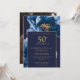 Convite Chic Azul Marinho Dourado Floral 50º Aniversário F