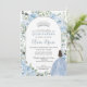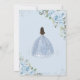 Personalize este convite para 16 anos de Quinceañera, floral azul de bebê mole, fácil e rápido. Basta clicar no botão personalizar para editar os textos, alterar as fontes e as cores das fontes. Apresentando bonito flores azuis de bebê pastel, verde delicado e uma menina com um vestido azul-bebê brilhante. Itens correspondentes disponíveis no repositório. c) Paperie fina somerset