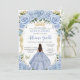 Personalize este bonito convite de 16 anos para o bebê azul floral Quinceañera / Sweet, fácil e rapidamente. Basta clicar no botão personalizar para editar os textos, alterar as fontes e as cores das fontes. Apresentando uma garota vestida com um lindo vestido azul bebê, flores azuis e borboletas de bebê chic. Itens correspondentes disponíveis no repositório. c) Paperie fina de Somerset pelo Happy Cat Studio.