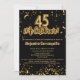 Convite Chic Black e Dourado Confetti 45º Aniversário