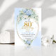 Convite Chic Blue Floral Eucalyptus 80th Birthday Invite
