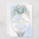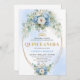 Convite Chic Blue Peony Gold Script Quinceañera Invite