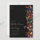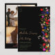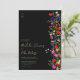 Adicione um toque de elegância boêmica ao seu casamento com esta Moderna Chic Boho Bright Elegante Colorida flores selvagens 3 fotos convite para casamento. Apresentando flores botânicas de matizes cor-de-rosa, vermelha, verde e roxa inspiradas em flores silvestres e jardins rústicos de aquarelas, com um verde sutil e uma tipografia moderna de matiz de bô em fundo escuro. Com uma elegante tipografia moderna, perfeita para casamentos de jardim ao ar livre causais.