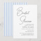 Convite Chic Bridal Shower Modern Script Blue Stripes