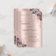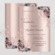 Um convite moderno, chique e glamoroso com pingos de brilho e flores em um fundo rosa dourado.