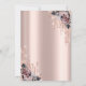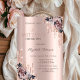 Um convite moderno, chique e glamoroso com gotas de brilho e flores em um fundo rosa dourado.