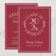 Envie convites de formatura elegantes para a celebração do seu graduado apresentando um emblema de tipografia branco sobre vermelho borgonha que diz: GRADUADO DA TURMA DE [ANO] com as palavras curvando em torno do ano no meio com folhas botânicas curvas ao longo de cada lado do desenho circular. Abaixo do emblema está o nome do graduado em uma fonte cursiva branca e a escola dele em uma fonte serifada elegante. Um retângulo branco fino cria uma borda perto da borda.