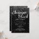 Este convite de chá de noiva de champanhe e café da manhã preto, branco e prata apresenta um bokeh prateado em um fundo preto. Preencha os campos de texto do modelo ou remova qualquer texto. Este design é definido com a capacidade de modelo para o convite ser usado em outras ocasiões, como uma festa de aniversário, celebração de aniversário especial, celebração de formatura ou outro evento especial.