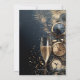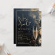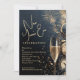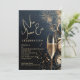 Stylish New Year's Eve party invitations feature a champagne glass, clocks, confetti and fireworks on a midnight blue background with your party details in chic gold lettering. Order PRINTED, INSTANT DOWNLOAD or both!